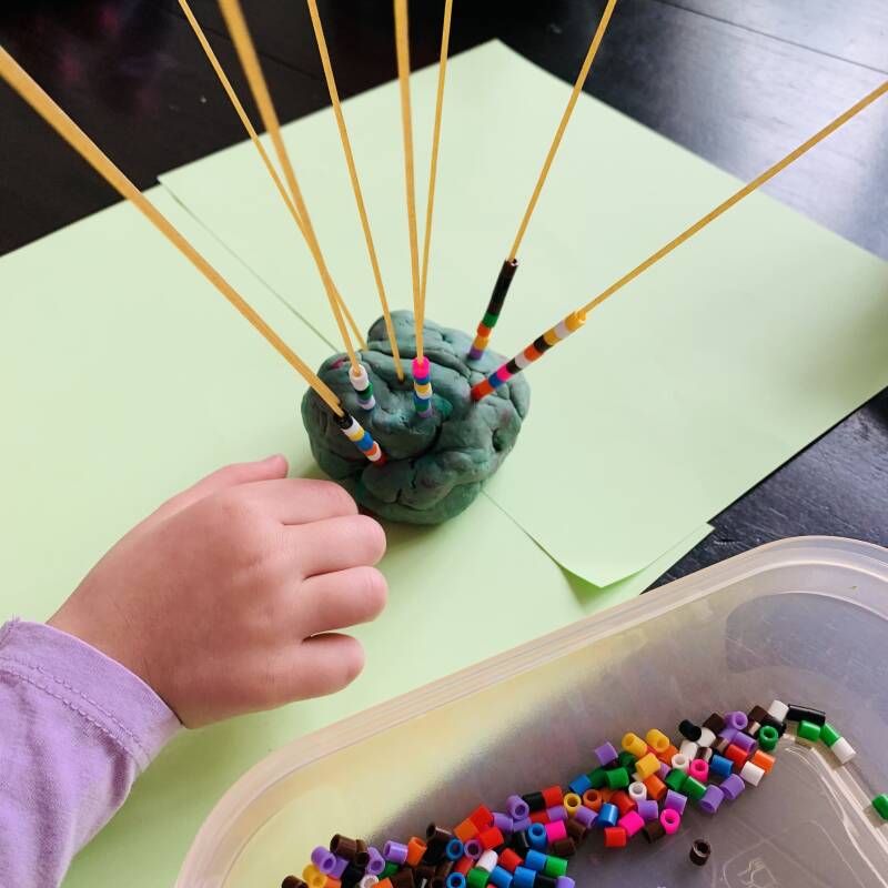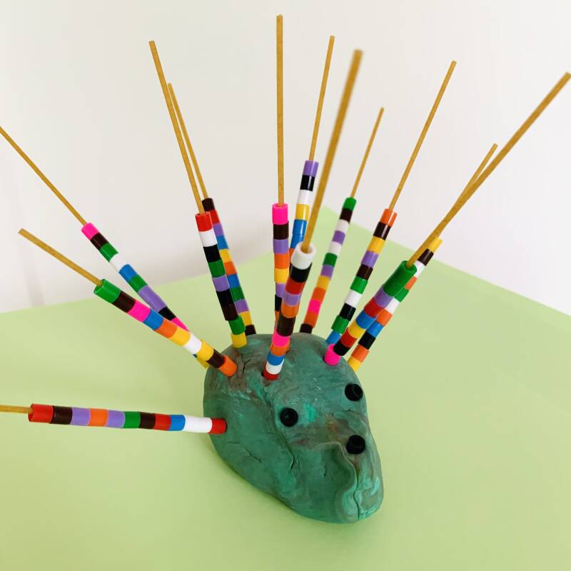 Maak een schattig egeltje van klei, spaghetti en strijkkralen! Goed voor de fijne motoriek en leuk om te maken met kleine kindjes!