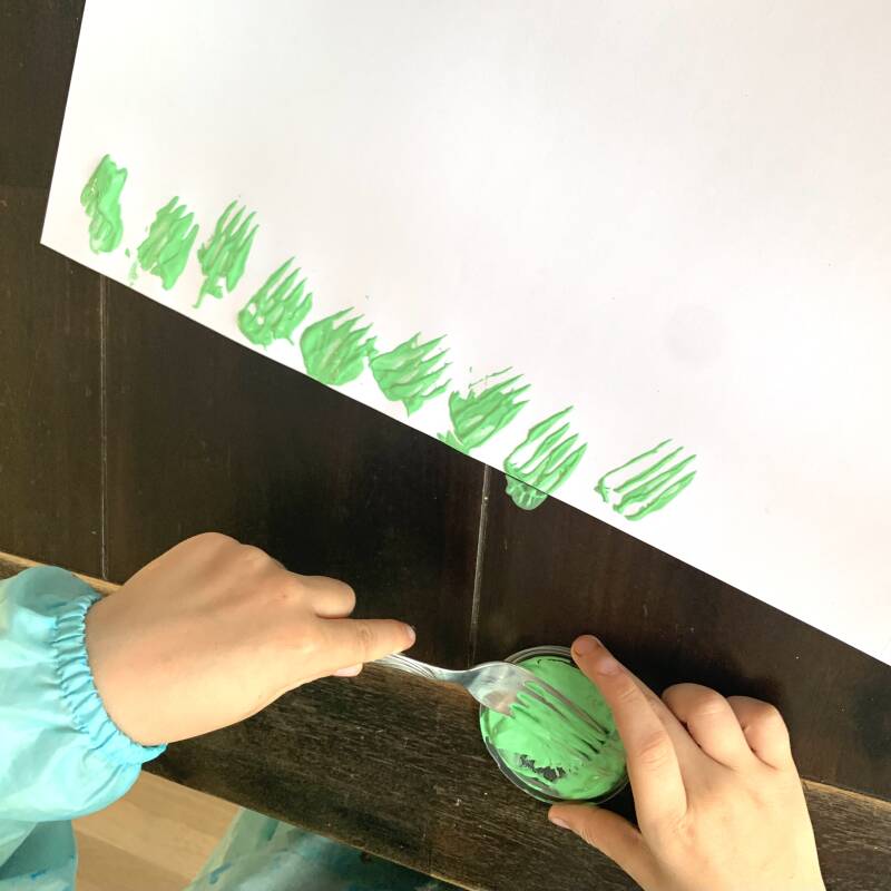 Met een vork en groene verf kun je gras maken onderaan de boom.