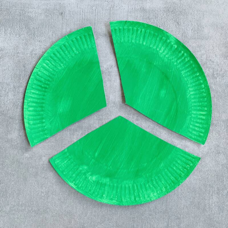 Knip het bordje in drie ongeveer gelijke delen.