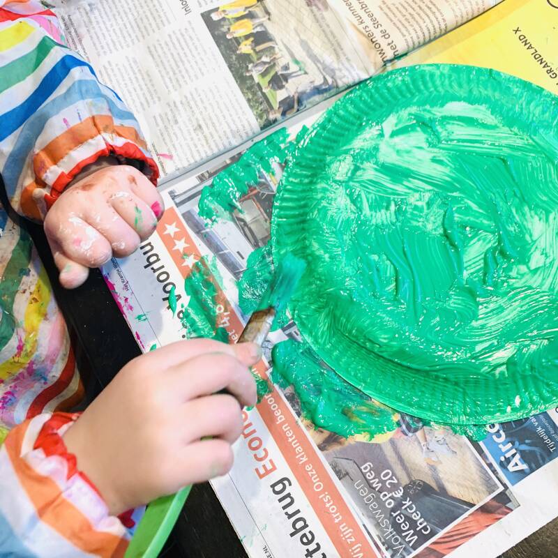 Verf een kartonnen bordje groen.