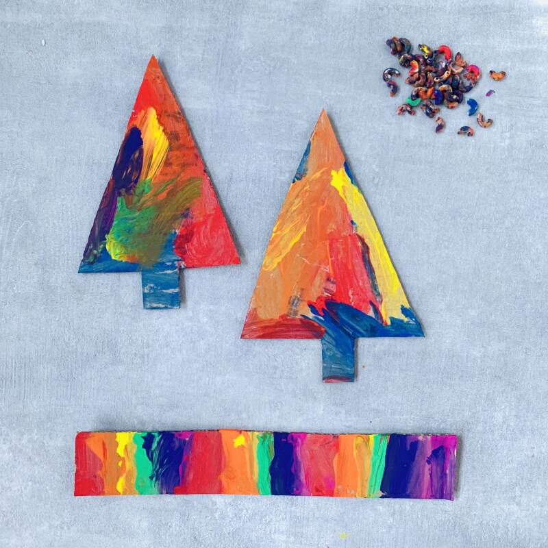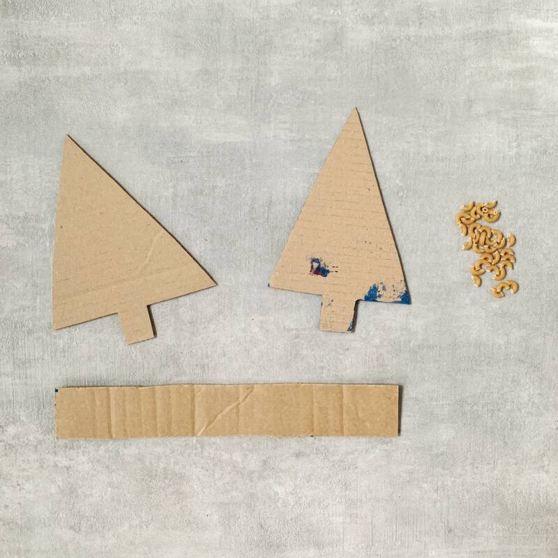 Verf de kartonnen kerstbomen en de kartonnen strook.