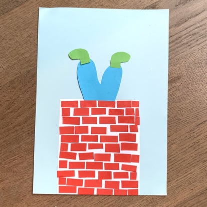 Plak je eigen schoorsteen met stukjes rood papier! Een goede oefening voor de fijne motoriek en knipoefening.