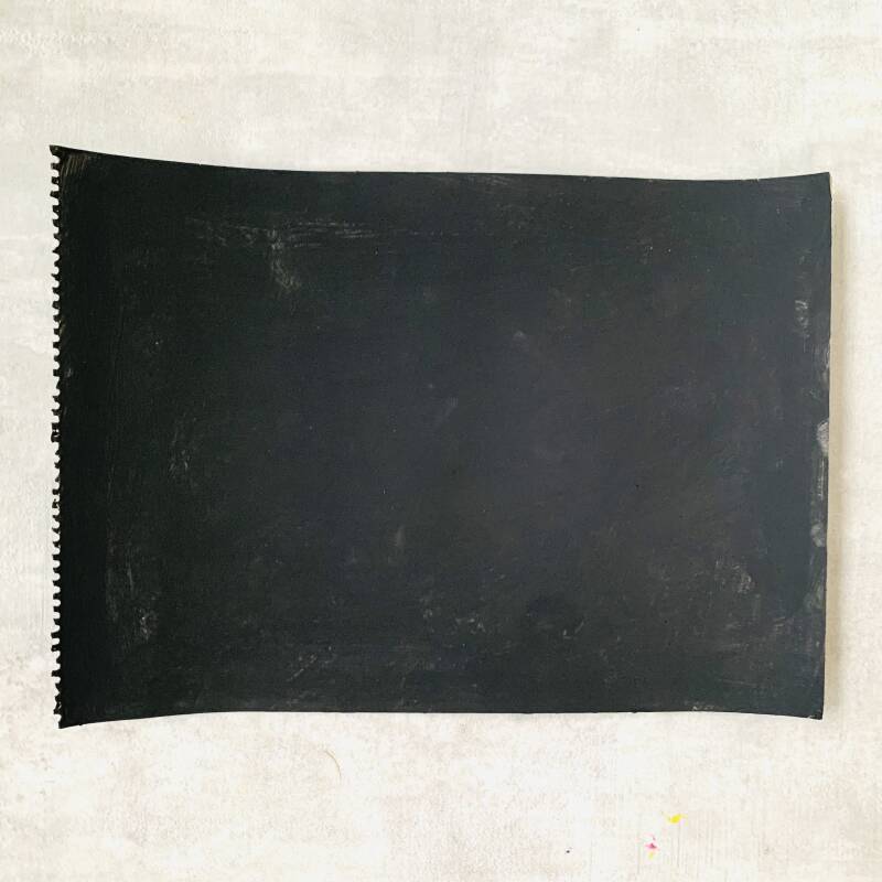 Maak met de vork en de verf een rondje op je zwart geverfde karton.