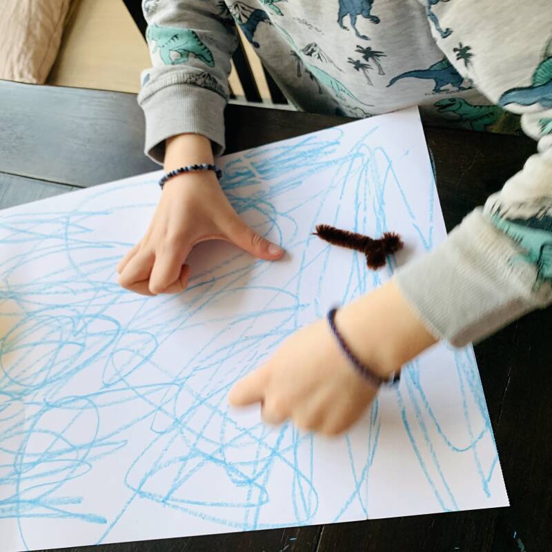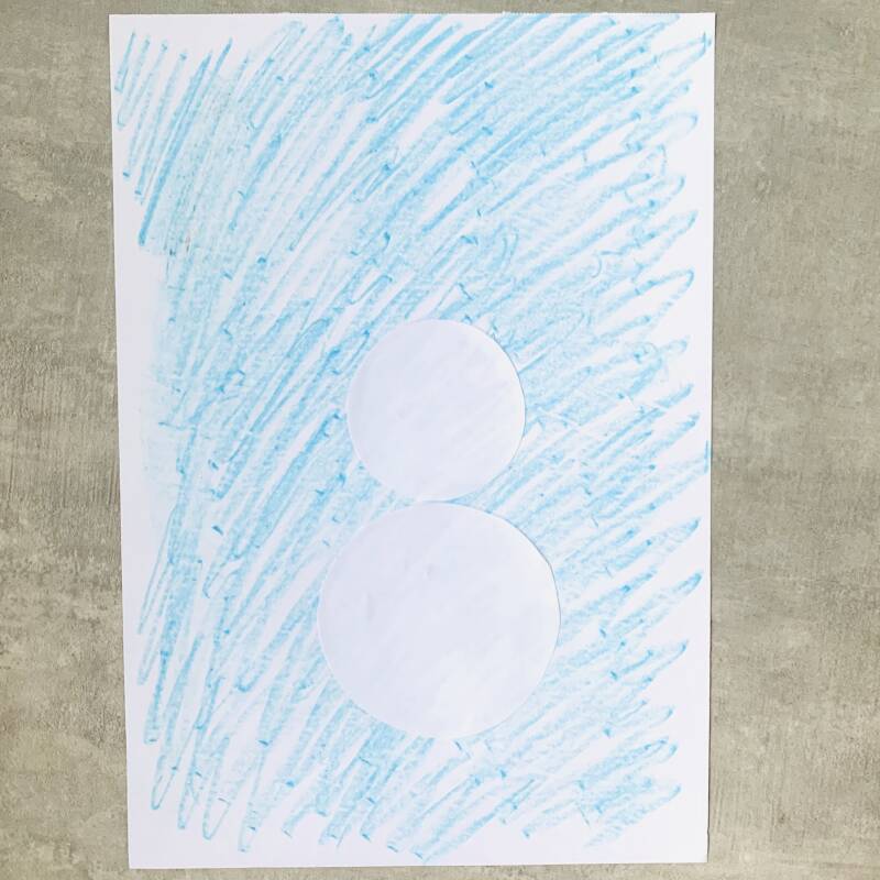 Pak een groot wit papier en maak het blauw met een wascokrijtje.
