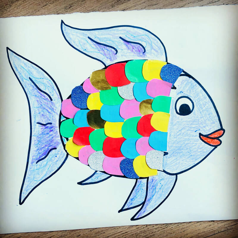 Je kan de mooiste vis van de zee ook van papier knutselen! Simpel, maar leuk om te maken voor de kleintjes!
