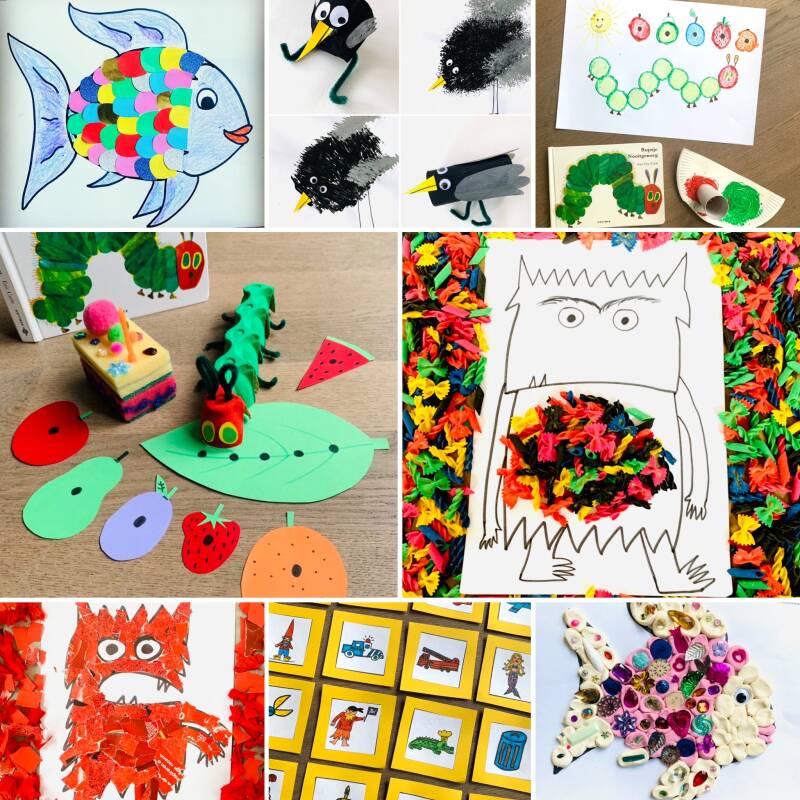 Knutsel Rupsje Nooitgenoeg of het Kleurenmonster, maak je eigen Coco of de Mooiste vis van de zee... hieronder vind je knutselwerkjes rondom het onderwerp kinderboeken!
