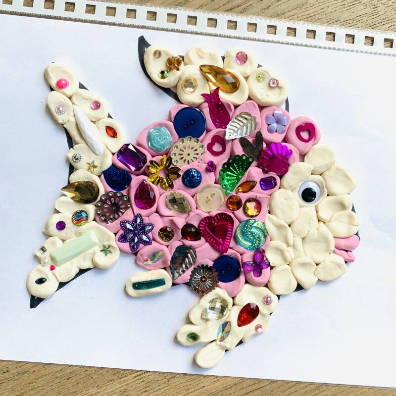 Maak de mooiste vis van de zee van klei, pailletjes en edelsteentjes of knoopjes!