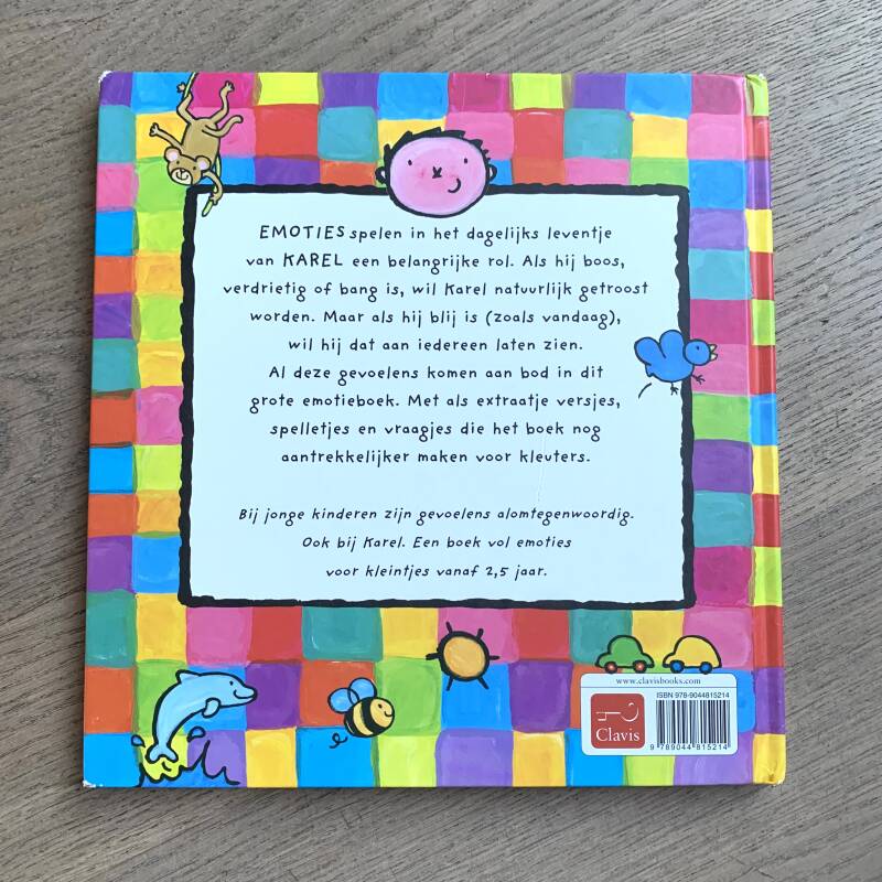 Bij jonge kinderen zijn gevoelens alom tegenwoordig. Ook bij Karel. Een boek vol emoties voor kleintjes vanaf 2,5 jaar.
