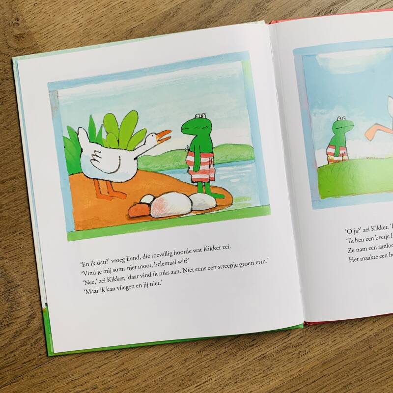 Kikker is kikker is een prachtig kinderboek dat gaat over hoe mooi het is dat iedereen uniek is en goed is in andere dingen. Kikker is verdrietig; hij kan niet vliegen net als eend, geen lekker taarten bakken als varkentje en niet lezen net als Haas. Uiteindelijk komt hij erachter dat hij goed is zoals hij is en zich niet moet vergelijken met zijn vriendjes. Hij is namelijk goed in weer heel iets anders: springen. Dit mooie kinderboek maakt de onderwerpen jezelf mogen zijn, je vergelijken met anderen, jaloers zijn, uniek zijn bespreekbaar. Want wat zou de wereld toch saai zijn als iedereen precies hetzelfde eruit zou zien en precies hetzelfde zou kunnen.