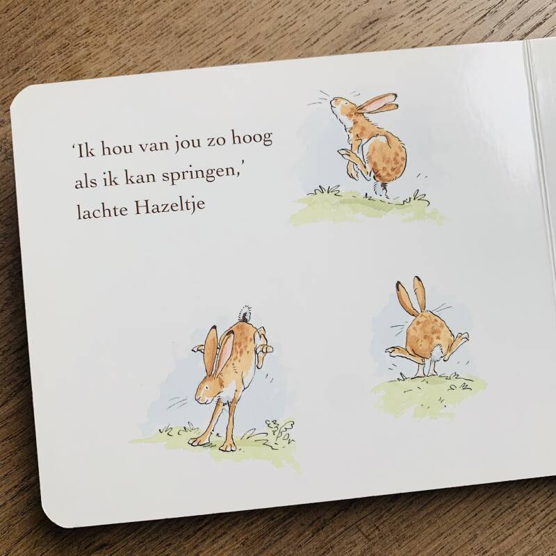 Dit prachtige boekje is natuurlijk enorm bekend. Het richt zich op de emotie houden van. De twee schattige konijntjes proberen aan elkaar duidelijk te maken hoeveel ze van elkaar houden. Ze gaan steeds een stapje verder tot ze uiteindelijk bij de bekende spreuk komen: ik hou van jou tot aan de maan en weer terug. Een super mooi en lief boekje wat iedere ouder in huis zou moeten hebben om even een lief knuffel en voorlees momentje in te lassen en elke dag aan elkaar te vertellen hoeveel ze van elkaar houden. Tip: maak de bewegingen erbij of speel het verhaaltje eens uit met twee knuffel konijntjes.