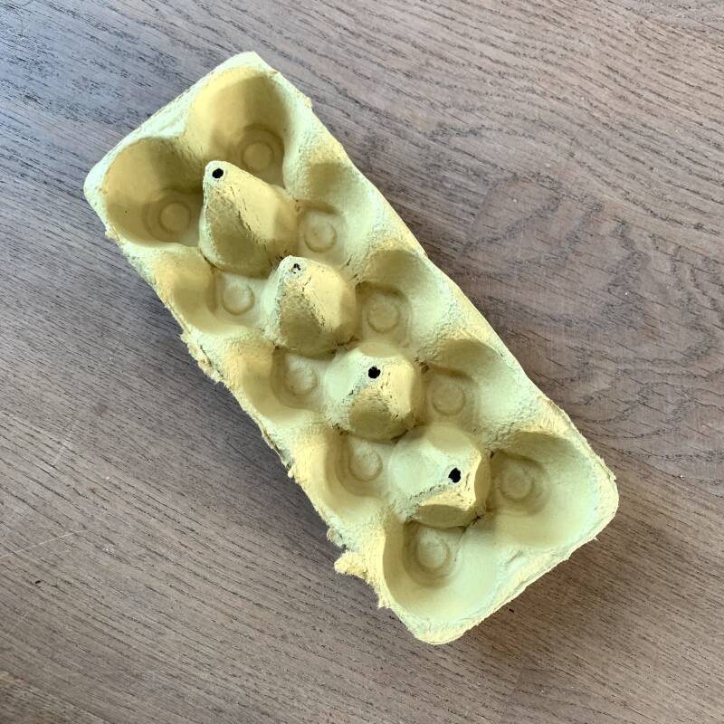 Knip de onderkant van de eierdoos los van de bovenkant.