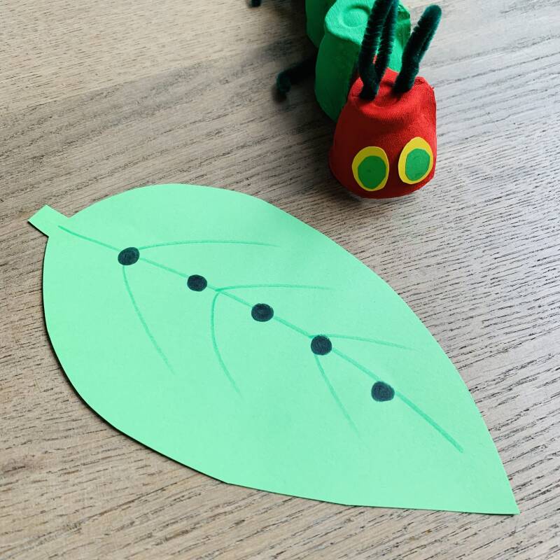 Is je Rupsje misselijk geworden van al dat snoepen? Dan lust hij vast wel een gezond groen blaadje. Deze maak je van gekleurd karton of papier.