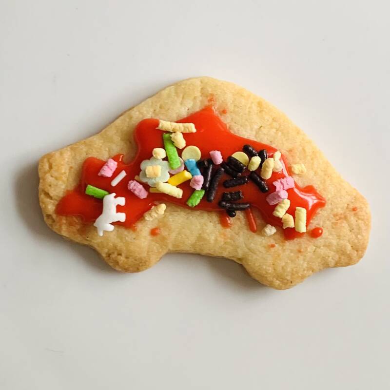 Tijd om je koekjes mooi te gaan versieren! Smeer wat glazuur op je koekje.