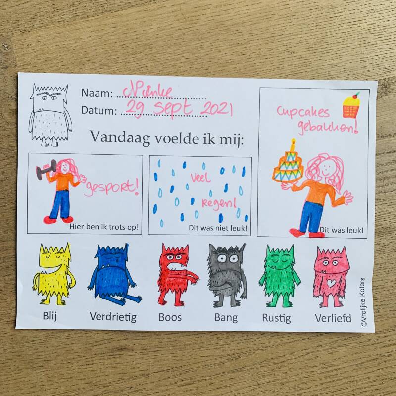 Vul het Emotie Dagboek in! Laat je kind kleuren, tekenen of schrijven hoe hij/zij zich voelde vandaag!