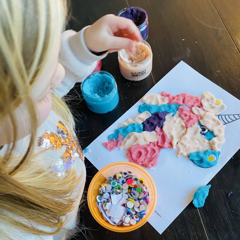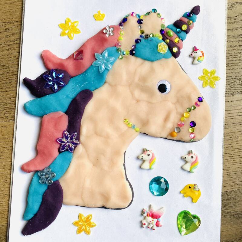 Daarna bedekte ze het gezicht van de eenhoorn met de klei.