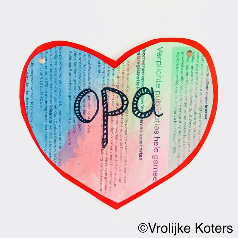 Laat de krant drogen. Teken als de krant droog is een hartje erop en knip dit uit.