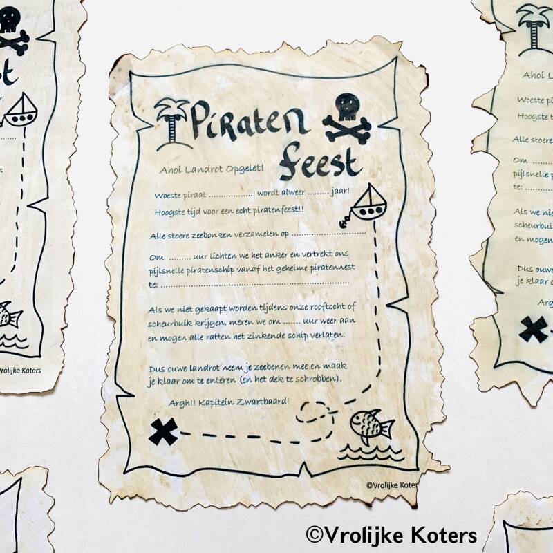 Een leuk piraten kinderfeestje begint natuurlijk met een spannende uitnodiging! Kijk hier: Piraten Uitnodiging