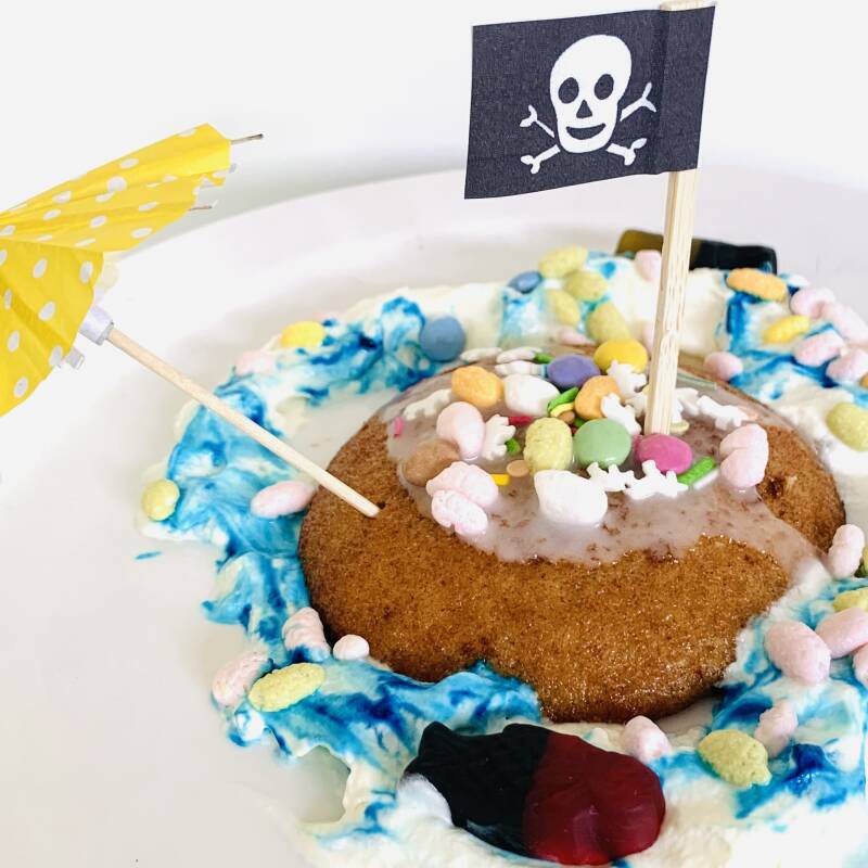 Maak een onbewoond eiland van een eierkoek! Kijk hier: Piraten Eierkoek