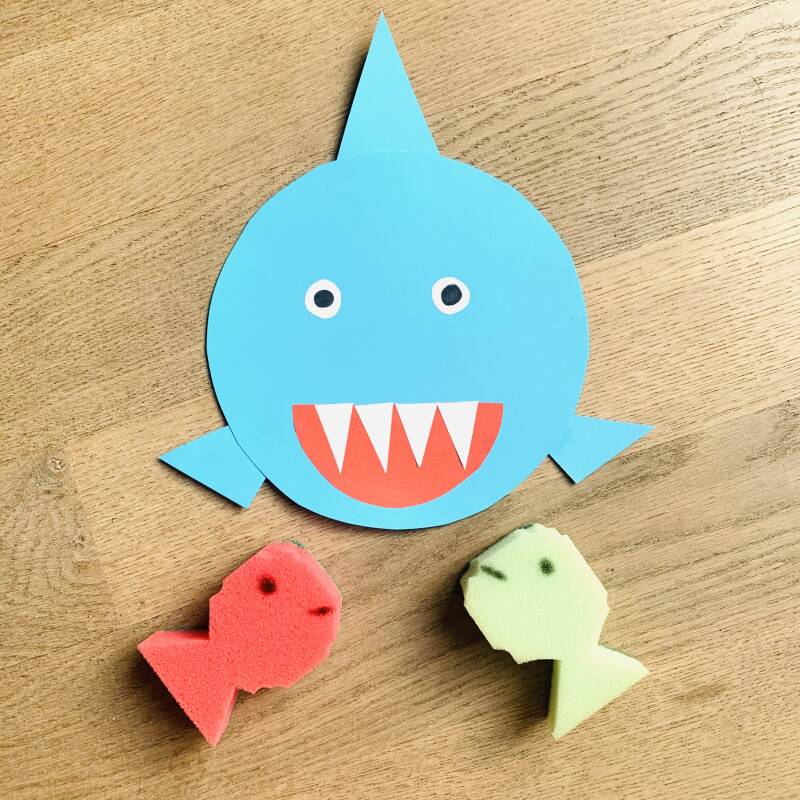 Knip uit een schuursponje een visje. Teken met een zwarte stift een oogje en de mond.