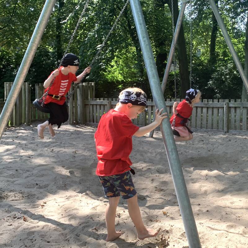 Een stoere piraat moet goed kunnen zwemmen! Stel dat zijn schip kapseist of hij schipbreuk lijdt. Maak een mooie schoolslag tot aan de volgende boom/lantaarnpaal en weer terug!