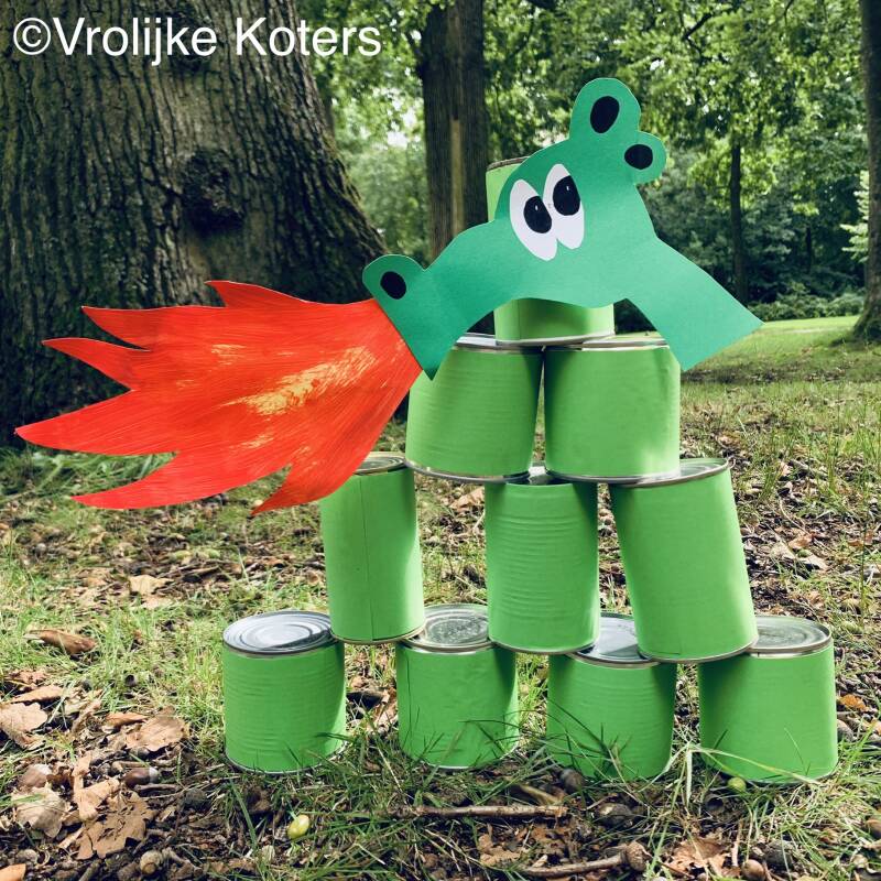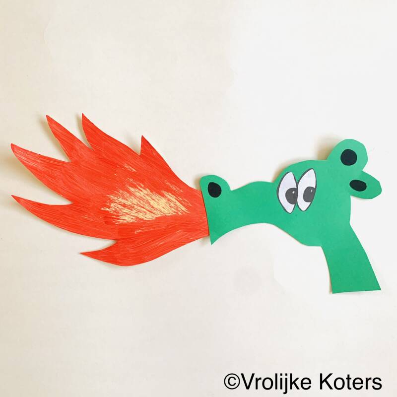 -Print de Drakenkop Met Vuur (zie de gratis download hierboven) uit op papier en knip de kop en het vuur uit.