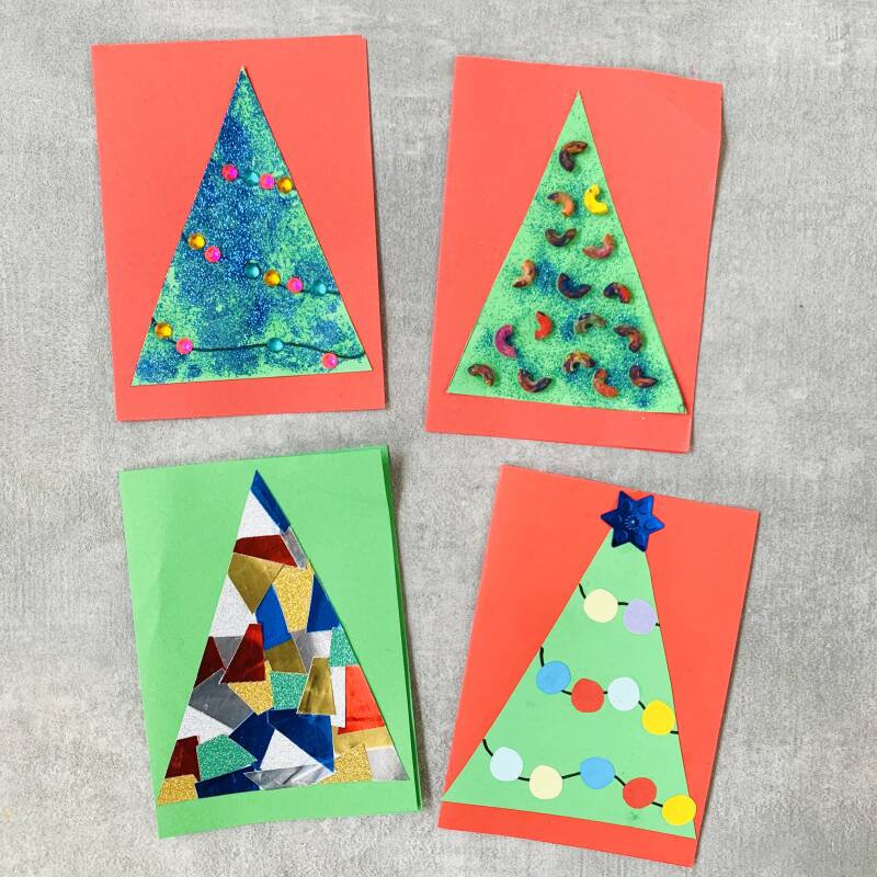 Zoals je ziet kun je met de driehoek basis een heleboel verschillende vrolijke kerstkaarten maken!