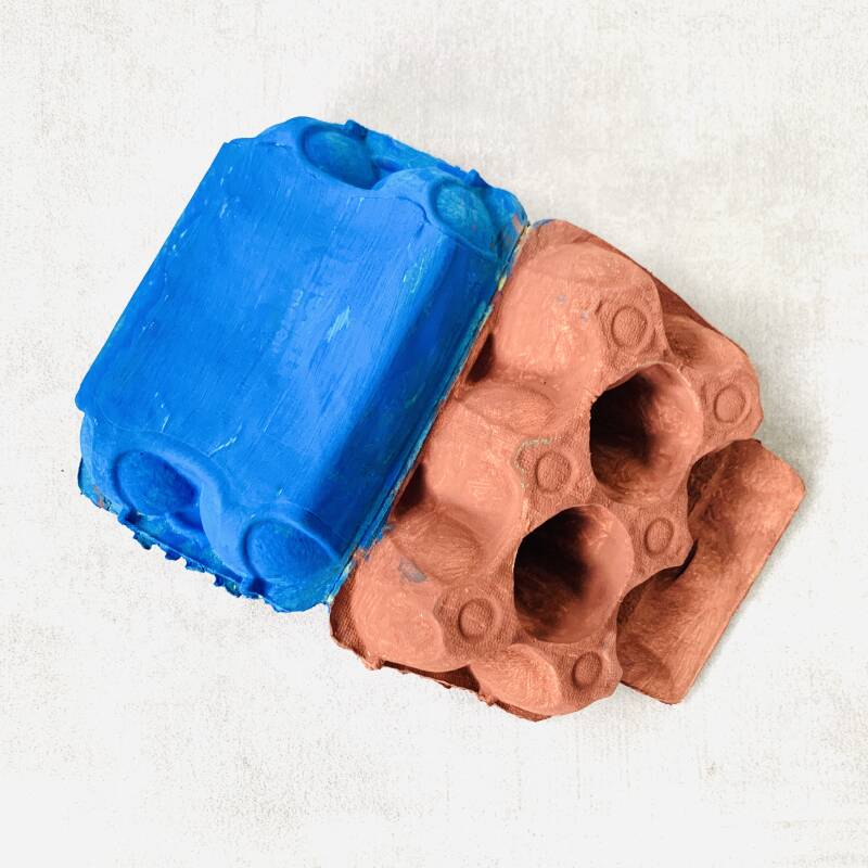 Verf ook de andere kant van de eierdoos bruin en blauw. Laat dit drogen.
