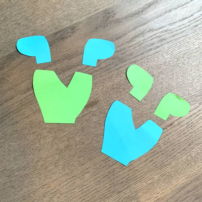 Knip uit gekleurd papier twee schoenen en een broekje voor je Pietje.