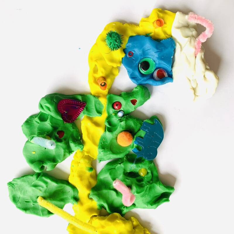 Als je klaar bent maak je een foto van je knutselcreatie en peutert daarna alle materialen weer uit de klei.