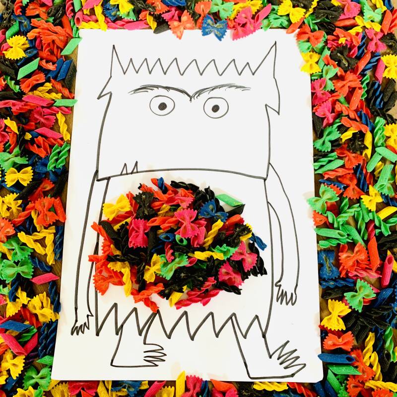 Je kan ook het Kleurenmonster Sorteerspel spelen met de gekleurde pasta! Kijk hier voor meer informatie: Kleurenmonster Sorteerspel
