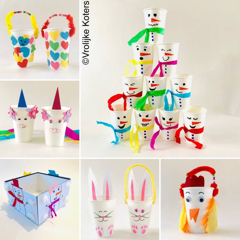 Je kunt de bekers natuurlijk ook gewoon voor jezelf maken! Vul de kip of konijn beker met paaseitjes of drink warme chocomelk uit je sneeuwpop beker! Limonade smaakt natuurlijk ook veel lekkerder uit je eigen eenhoornbeker!