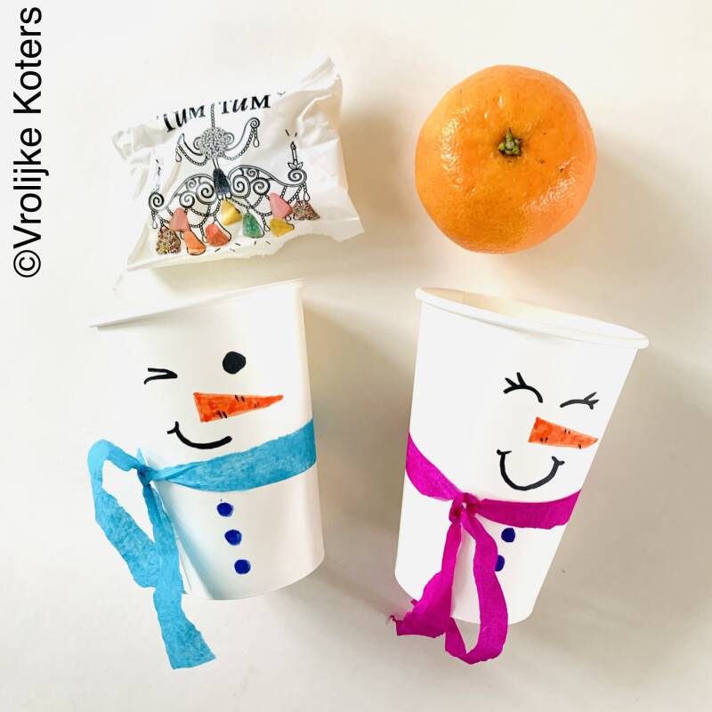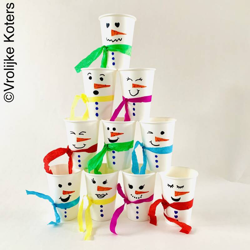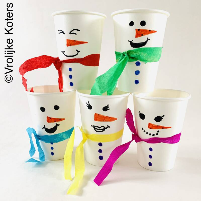 De sneeuwpop bekers! Zo simpel en zo vrolijk! Leuk om iets in te doen en te trakteren, maar je kunt er ook eentje voor jezelf maken en er lekker warme chocomelk uit drinken. :)